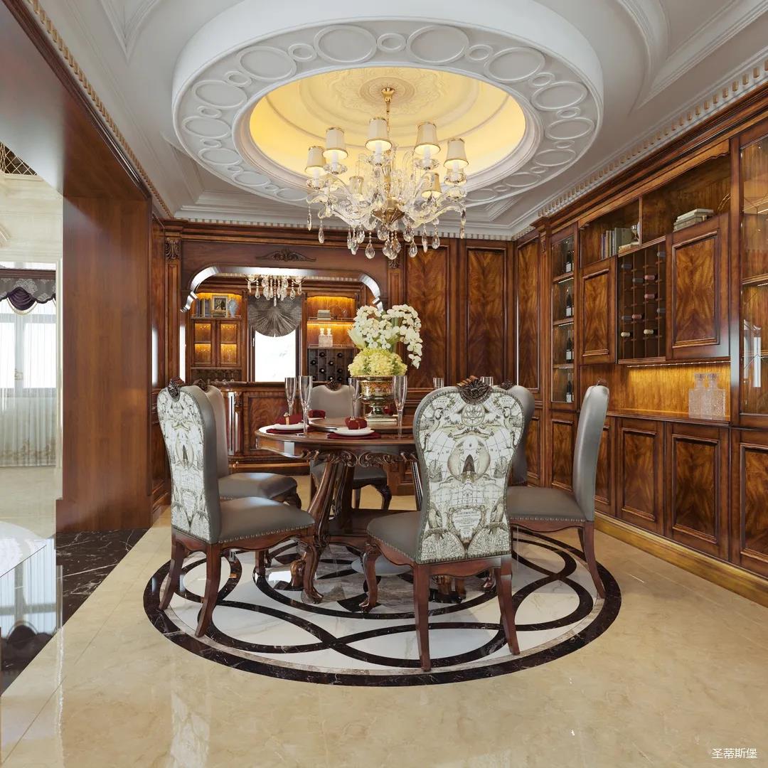女业主是留美归来,非常喜欢美式用餐氛围,设计师以怀旧雅致作为室内基调,整体定制柜与护墙,都透着美式的自然怀旧,即使褪去家具软装,仅存留硬体结构,仍透散着优雅纯净的美式韵味。