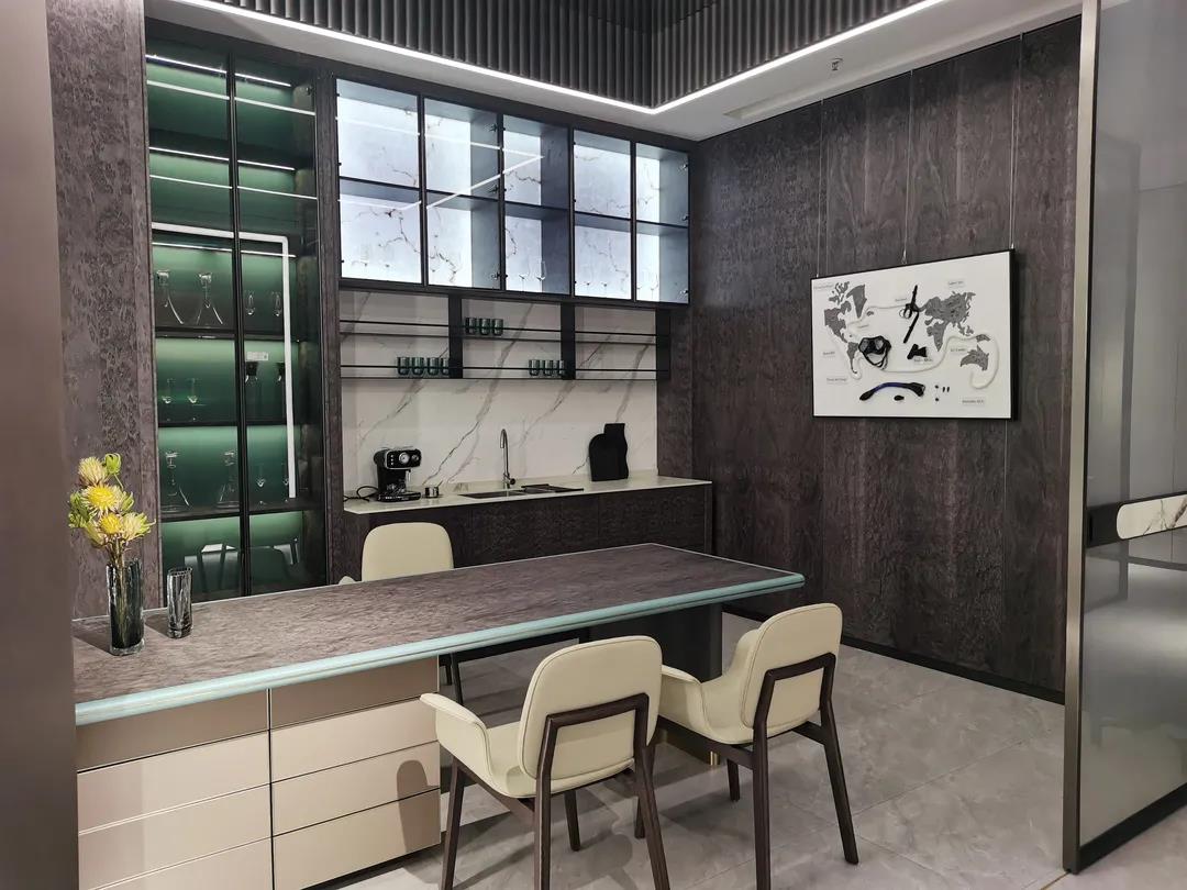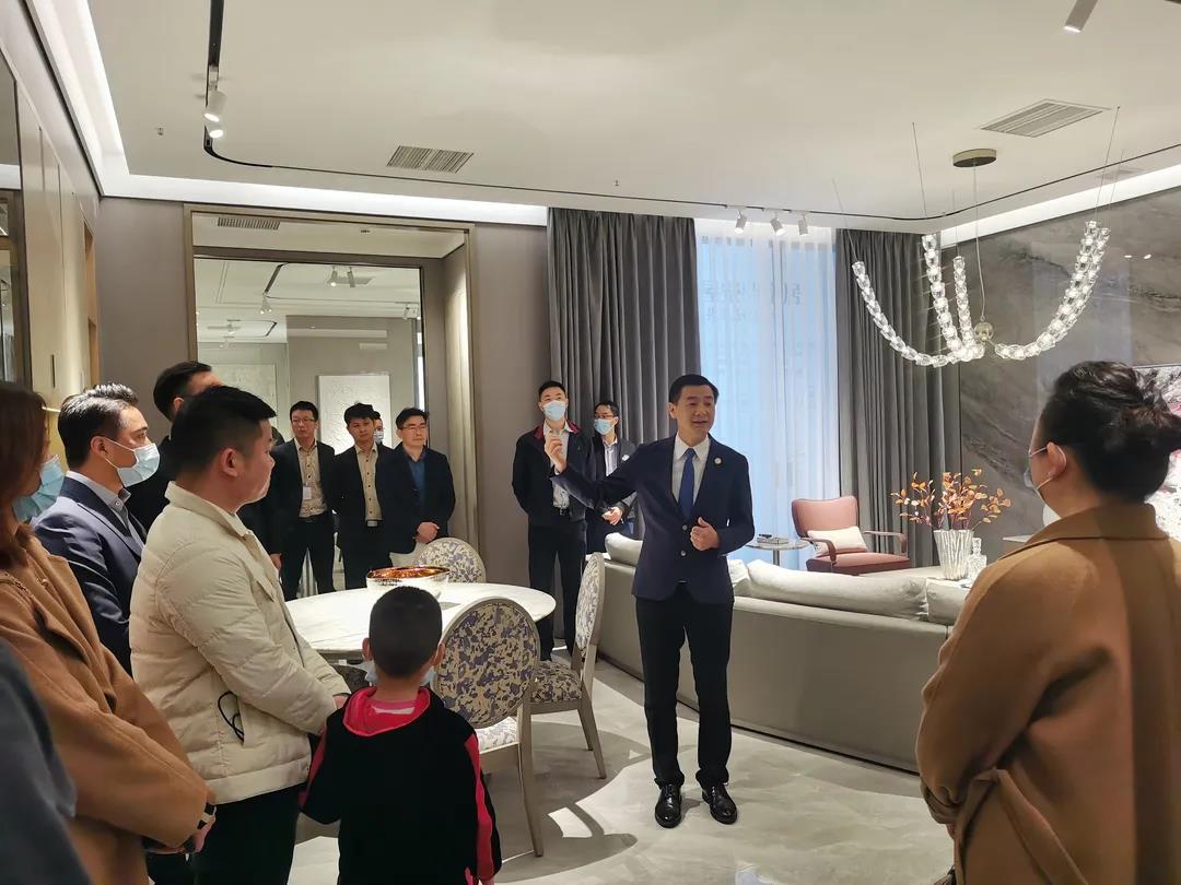 在新品系列展厅内,德信集团营销部总经理陈玉伟先生对【圣蒂斯堡.迪尚】新品、及【圣蒂斯堡.新古典】升级新品的产品革新、空间打造、及营销赋能、拎包项目优势、未来市场剖析等方面进行了多维度的阐述。他表示随着消费者审美升级,对于高品质高颜值家居的追求也与日俱增,圣蒂斯堡“移动家具+整装定制”的整合优势一直紧贴时代趋势和潮流,必将赢得更加广阔的市场蓝海、和更多的消费者认可和信赖。