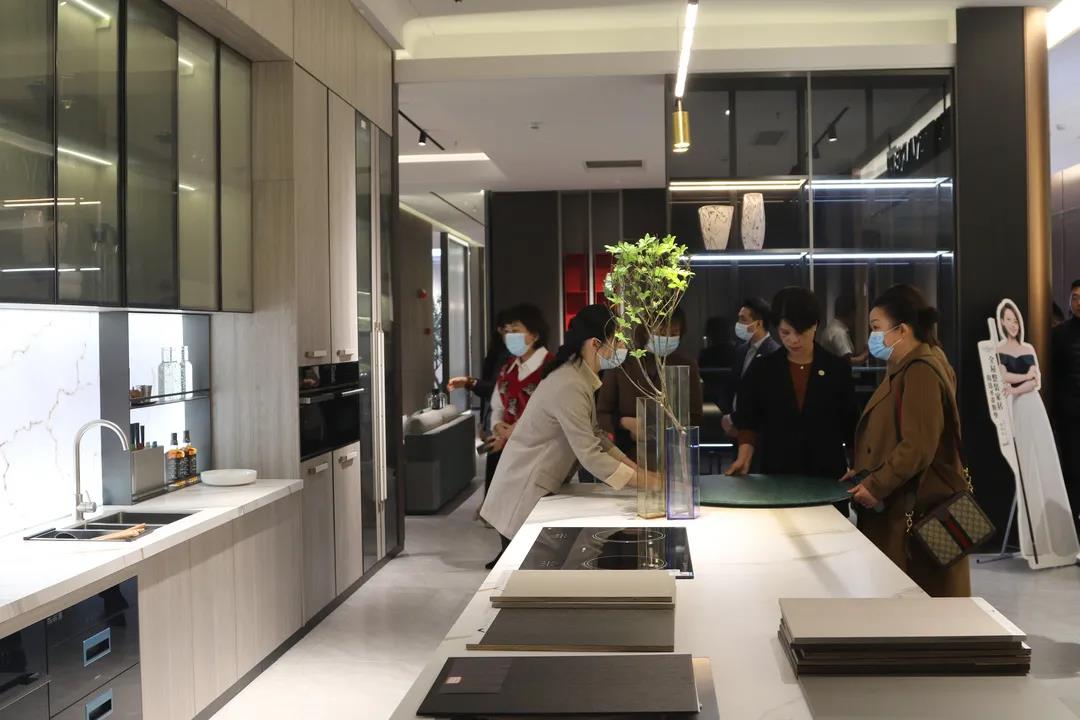 在展厅现场,各系列展厅极具潮流感的空间布局和场景设计,完美呈现了当下流行的空间组合和软装搭配思维;极具时尚品位的产品设计和色彩运用,赋予产品个性鲜明、多元混搭的时尚气质,彰显了圣蒂斯堡“整装定制·全案设计”产品整合优势和特色。