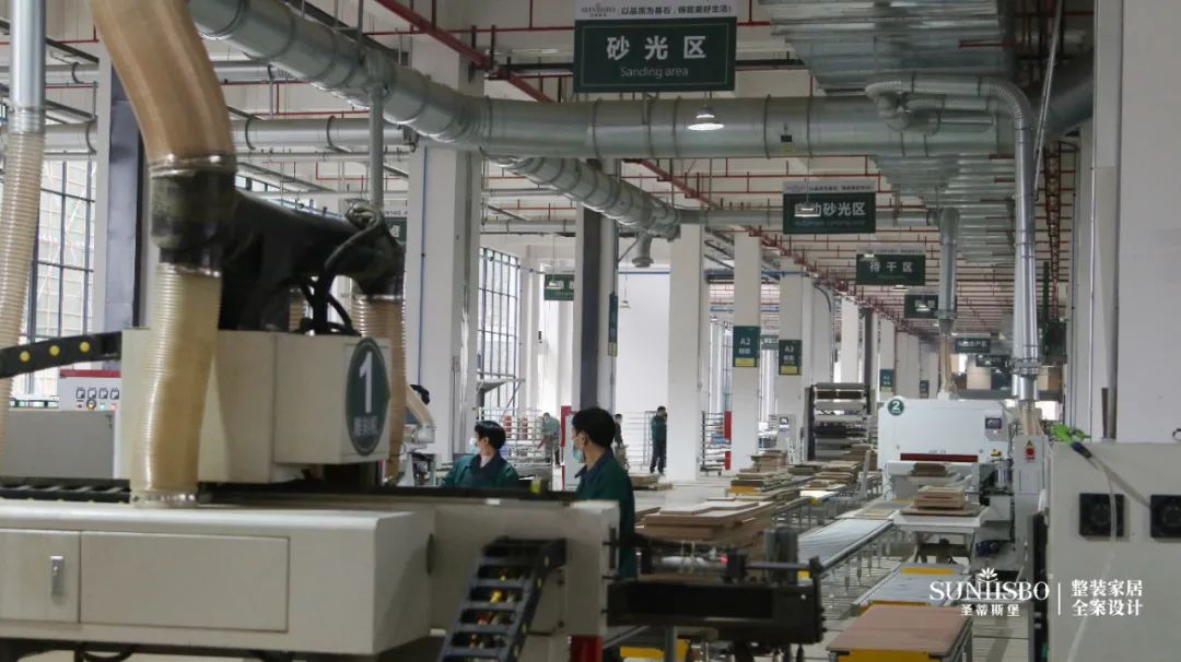 圣蒂斯堡智能家居产业园分两期建设完成,1号定制车间主要生产高端整装定制产品。全新生产线具有三大特点:一是产品设计领先,由资深设计师领衔的国际顶级设计团队将欧美家具经典与中国家居文化深度融合,打造”中西合璧”的革新力作,二是生产线领先,全新引进德国、意大利定制家具生产设备,打造行业领先的实木家具全自动数字化生产线,为集团产能提升提供强劲动力;三是数字赋能,与家居行业知名软件服务商深度合作,全面导入ERP、MES、CRM等管理系统,构建以数字化为核心的智能制造4.0体系,为集团整装家居全案服务的发展战略奠定坚实基础。
